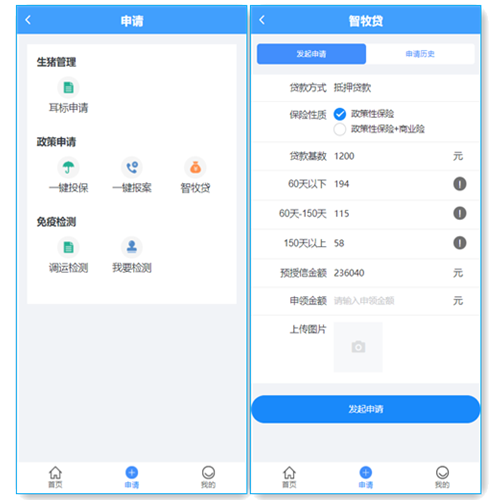 依托“生猪精密智管”应用,浙江森特信息技术有限公司(托普云农全资子公司)改变以往生猪强制免疫“先打后补”政策补助制度,再造业务流程。通过打通生猪生产与金融、保险等关联数据,将以前需要以日、月来衡量办事效率的生猪养殖补助、投保、贷款等业务,变为手机投保、线上申请病死猪理赔,最快1个工作日就能收到赔偿款。