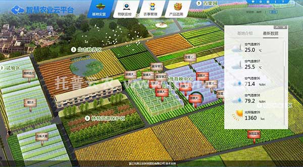 该平台涵盖了设施农业监控系统、水肥一体化智能灌溉系统、大田四情监测系统、自动喷灌系统、立体栽培系统、作物生长补光系统、视频监控系统、农事档案管理追溯体系等,智能化管控临浦基地。