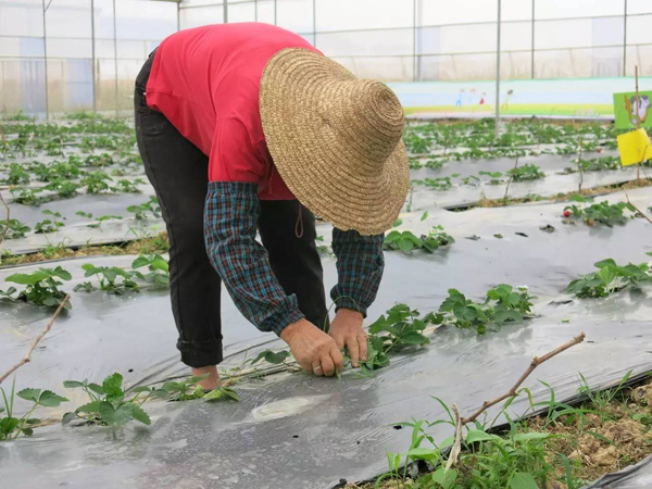 ??? 草莓苗木定植到长出花蕾后,逐株人工摘除过多老叶及子芽、腋芽;开花结果后再次摘除茎部变黄的老叶、枯叶,及时摘除匍匐茎,减少营养消耗,同时除去小分枝及弱小果,提高品质。
