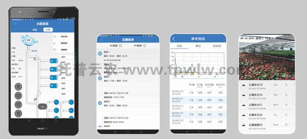 ?????? 可远程查看温室墒情、环境气象采集数据;远程查看温室内视频信息;远程设置水肥、风机、湿帘等设备运行,实现远程智能化管理;可在手机上进行农事管理或在线专家咨询。?