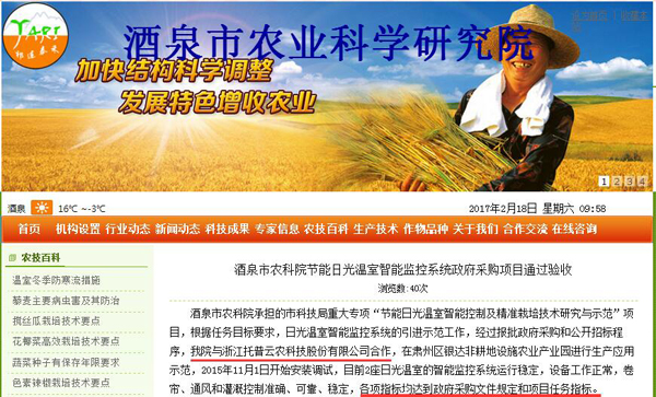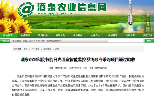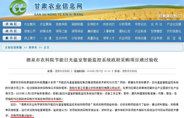 酒泉市农科院节能日光温室智能监控系统政府采购项目通过验收