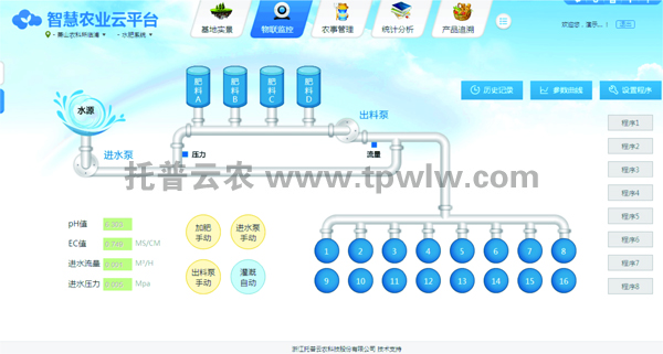 玉米适宜的土壤pH为5~8,以PH6.5~7.0最适。耐盐碱能力差,特别是氯离子对玉米危害大。而通过施肥机精确的参数设置,可严格把控肥液的浓度以及PH值,为玉米提供最适宜的生长环境,同时用户也可通过网页或手机APP远程查看水肥流量统计数据、园区视频信息、控制田间电磁阀、进行在线专家咨询,实现远程智能化管理。