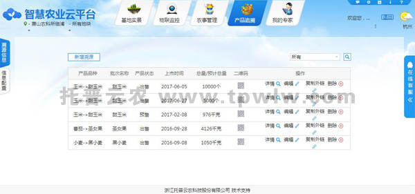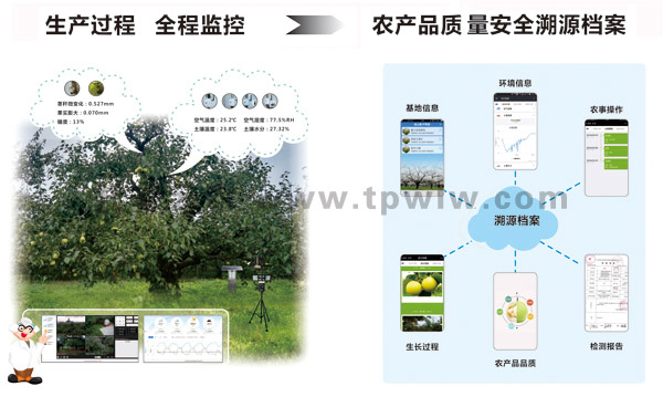 其智慧农业云平台的追溯系统可生产过程全程监控,并建立农产品质量安全溯源档案,涵盖基地信息、环境信息、生长过程、农事操作、农产品品质、检测报告,农产品信息一键追溯。