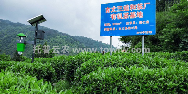 ? ? 为推广茶园绿色防控技术,提升古丈茶叶安全水平,基地成功引进由“浙江托普云农科技股份有限公司”研发生产、中国茶科院监制的风吸式茶园杀虫灯。