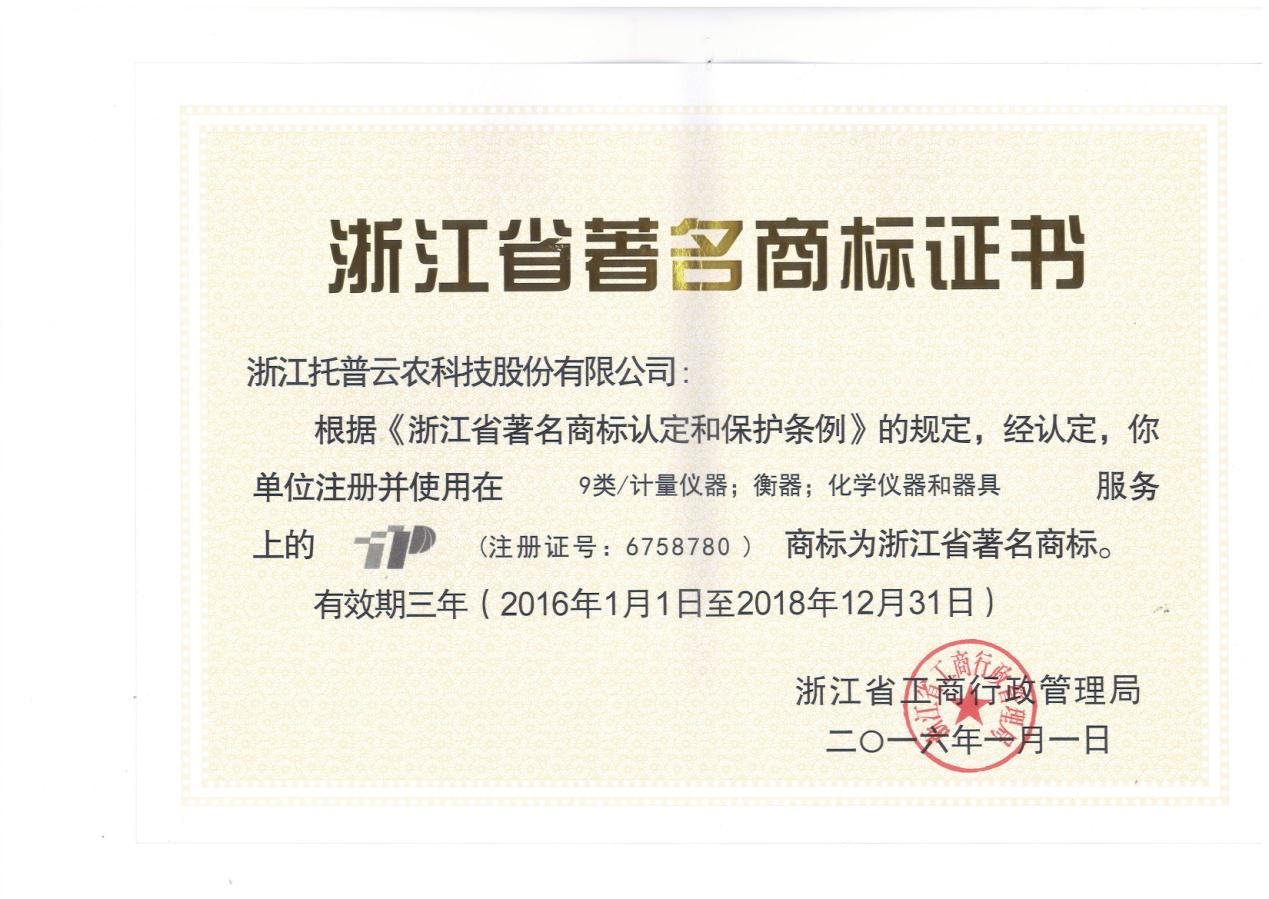- 托普商标荣获浙江省著名商标发表日期:2016-05-10 来源:托普云农 浏览次数:4074次