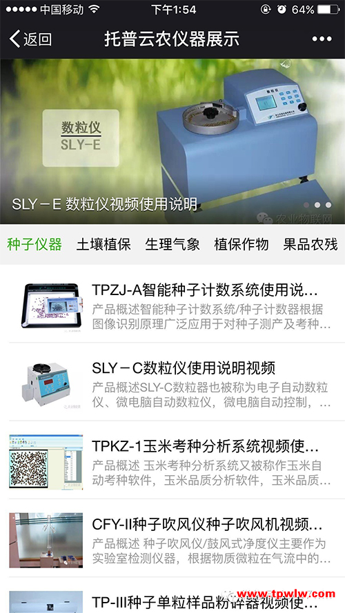 - 仪器使用不发愁,托普云农新推查看仪器操作视频功能!发表日期:2016-06-22 来源:托普云农 浏览次数:4059次