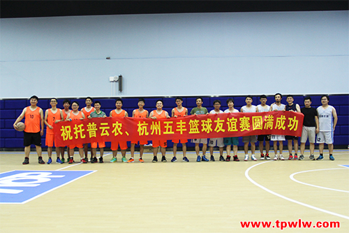 - 托普云农携手杭州五丰举办篮球友谊赛发表日期:2016-07-12 来源:托普云农 浏览次数:3828次7日下午由浙江托普云农科技股份有限公司(以下简称“托普云农”)同杭州五丰联合肉类有限公司(以下简称“杭州五丰”)联合举办的篮球友谊赛圆满划上了句号。此次友谊篮球赛在中国(杭州)智慧信息产业园的篮球场内举行,最终托普云农以83:64,取得了比赛胜利。
