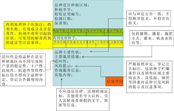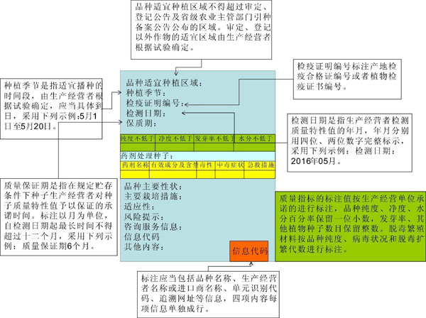 对于农作物种子标签的标注要求如下。农作物种子标签正面: