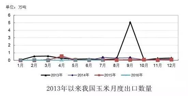 海关数据显示,7月份我国玉米出口量为50吨,8月份出口420吨。2015/16年度以来累计出口0.38万吨,同比下降66.55%。近年来国内玉米出口维持下降趋势。由于头号出口大国美国玉米下一年度预计丰产,且出口报价较低,2016/17年度我国玉米出口将非常有限。