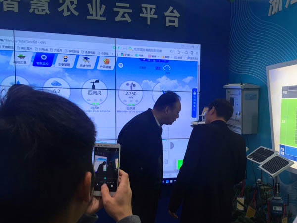 11月26日,浙江省人大常委会党组书记、副主任茅临生参观托普云农展位。茅临生饶有兴致地参观了托普云农展位的各区域,详细询问了托普云农农业“四情”监控系统、设施农业监控系统、水肥一体化监控系统、智慧农业云平台等系统平台的相关工作原理和实施效果。茅临生还来到仪器展示区,由托普云农展区负责人为其介绍了传感器、土壤墒情监控系统硬件、农药残留速测仪等智能硬件设备。这次参观,充分感受到茅临生对浙江智慧农业发展的关注和支持;鼓舞了托普云农员工的士气,激发了大家的工作热情,托普云农将继续为浙江省现代农业建设贡献力量。