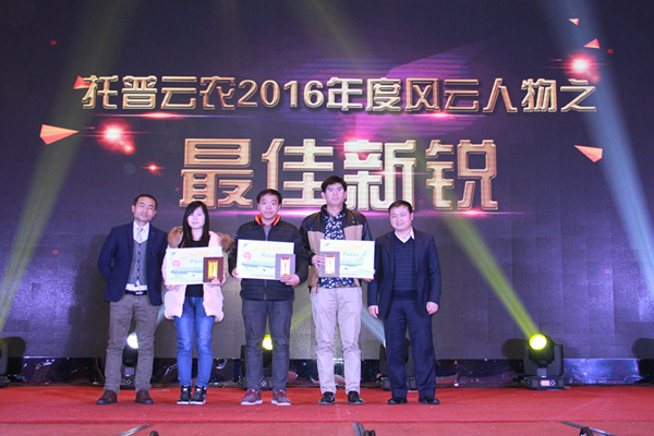 在总结大会后,公司对2016年度托普优秀员工进行了表彰。共颁发了最佳新锐、优秀员工、品质改进奖、销售精英奖、最佳团队奖、优秀技术团队奖等多项大奖。陈渝阳董事长,朱旭华副总经理及各中心分管总监为获奖员工、团队颁奖。颁奖盛典后,财务朱娜总监公布2016年度股权授予名单,让核心员工享受公司发展的硕果。