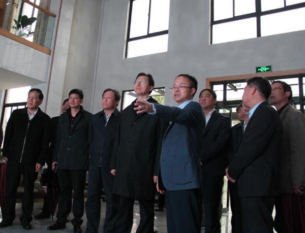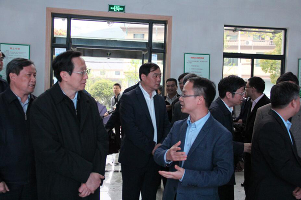 农业部部长韩长赋(中)、浙江省副省长孙景淼(左三)、浙江省农业厅厅长林健东(左一)、托普云农副总朱旭华(左五)