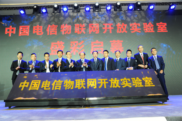 托普云农董事长陈渝阳(右一)在中国电信物联网开放实验室启动仪式上