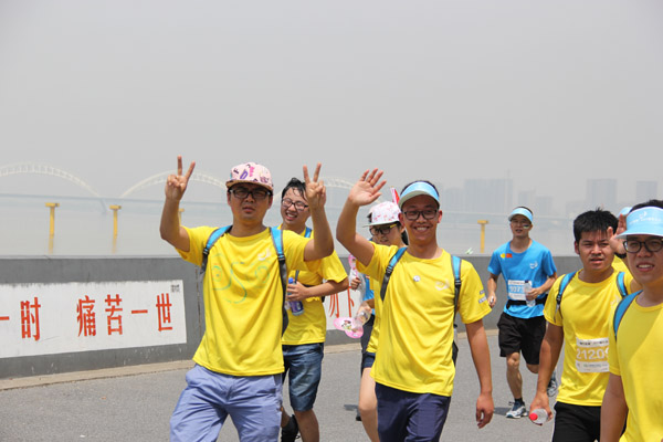 托普云农百余名员工在毅行大会出发前的整装待发