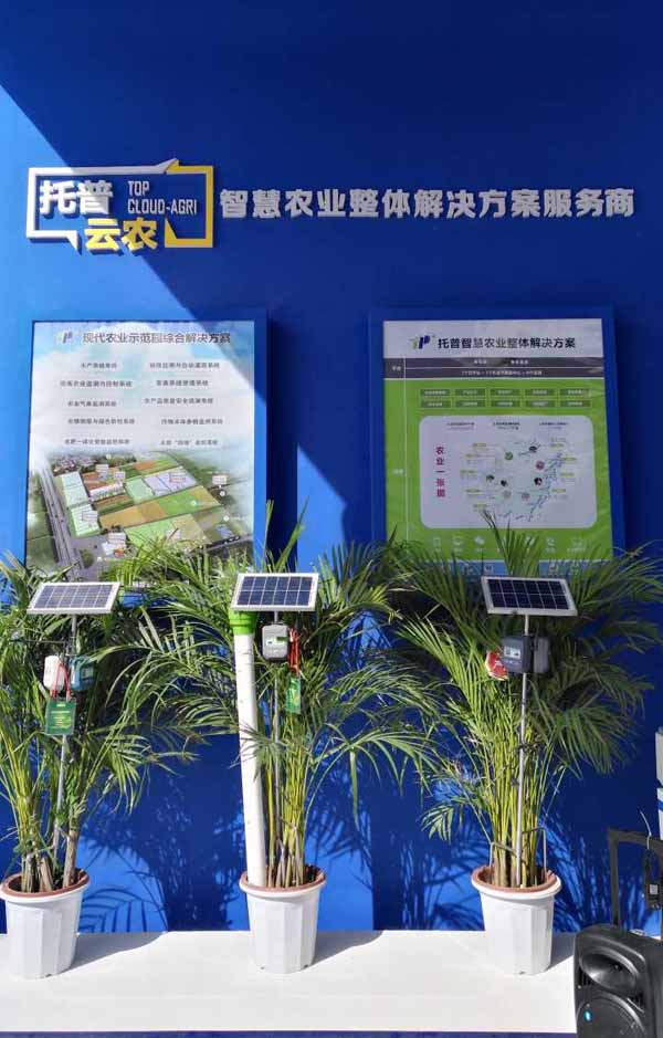 室外展区,多款产品与服务亮相新一轮科技革命和产业变革,为传统农业向现代农业、智慧农业转型带来强劲动力。为做好现代农业的可视化远程诊断、远程控制、灾变预警等智能管理,托普云农研发的智慧农业云平台、智慧农业整体解决方案以及远程拍照式虫情测报灯、无线土壤墒情监测站、温室小管家等智能硬件设备齐亮相展会现场。