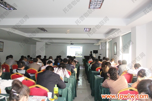 图为:托普仪器陈渝阳总经理解读“农业物联网”内涵