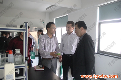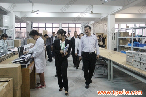 图为:考察团视察托普仪器生产基地