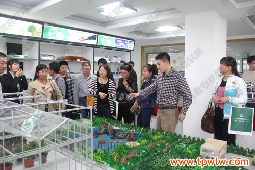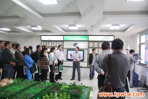 在三楼样品室,“托普农业物联网”吸引了新疆客人们的目光,惟妙惟肖的“农业物联网”沙盘直观展示了公司领先的“农业物联网”技术应用。