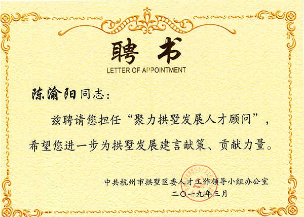 3月14日下午,为落实《拱墅区“运河英才”高层次人才引进计划的实施意见》,杭州拱墅区政府召开“人才引领发展”高层次人才座谈会,为推进人才的选拔工作,会上正式聘任了10名高层次人才代表作为拱墅区首批“聚力拱墅发展人才顾问”,我公司董事长陈渝阳先生以“国家万人计划科技创业领军人才”、“科技部创新人才推进计划科技创新创业人才”的身份有幸入选其中。