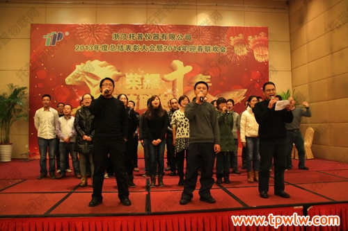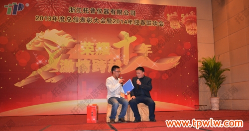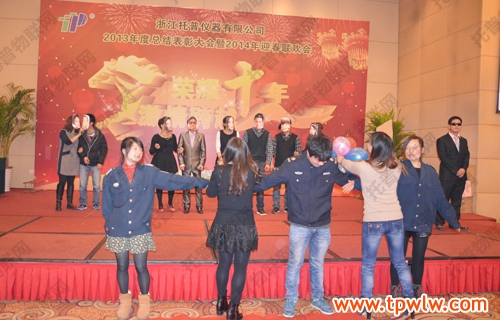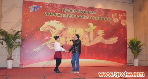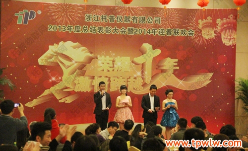 - “荣耀十年、激情跨越”之托普仪器2013年年终晚会发表日期:2014-01-27 来源:托普云农 浏览次数:3976次飞雪送蛇归,骏马迎春来。2014年1月24日六点整,在一片欢乐祥和的气氛里,“荣耀十年、激情跨越”之托普仪器2013年年终晚会缓缓拉开序幕。托普仪器260余人的大家庭齐聚一堂,庆祝托普十年华诞,庆祝一年的工作成果,庆祝除旧迎新。晚会伊始,托普仪器陈渝阳总经理上台为本次晚会致开幕词,为即将到来的马年向所有托普家人致以新春的问候。
