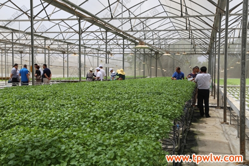 图为:考察团考察无土栽培种植技术