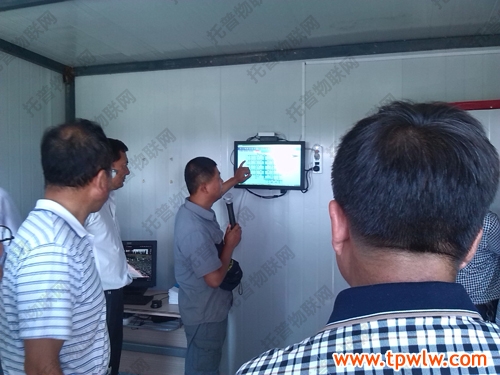 图为:托普仪器驻新疆办事处的技术人员介绍“四情”自动监控系统情况
