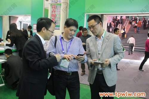 图为:浙江省农业厅信息处戴守勤副处长体验手机掌控农业信息