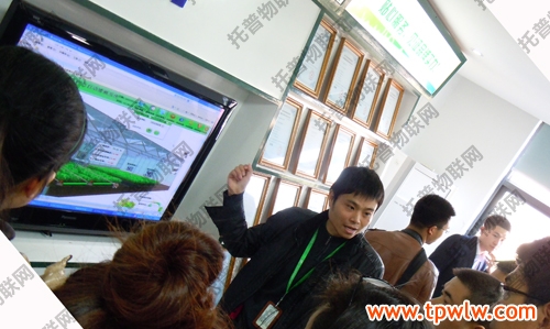 图为:托普仪器技术人员为参观者讲解物联网知识