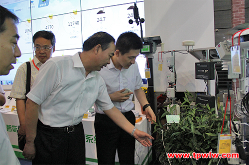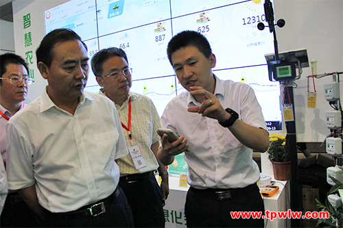 图为:安徽省农委孙正东主任观摩托普云农传感器设备