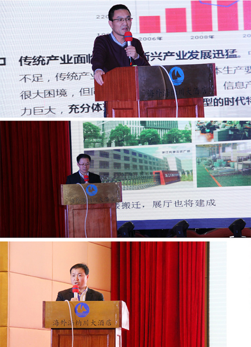 图为:陈渝阳总经理、朱旭华副总经理发表主题汇报