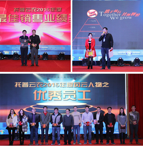 本届年会由行政人事总监主持,公司副总朱旭华先生向全体托普人做了公司2015年总结报告,并分析这一年成绩和存在的不足。陈渝阳总经理以中央一号文件为驻点,全面分析了中国现代农业的发展趋势,并对公司目前所处的宏观环境进行了深入的分析,并公布公司2016年的战略发展规划。表示企业发展离不开优秀人才,其发展成果也终将惠及广大托普人,并重申了公司内部优秀人才的股权激励机制,让更多优秀的事业合伙人能够分享到公司的发展成果。期间公布了2015年度优秀员工并对其表示感谢和祝贺!