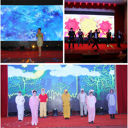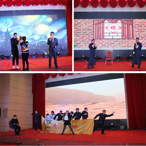 精彩纷呈的“新故事,新起点”2016新春年度盛典在四位支持人的深情开场中拉开序幕。热情欢乐《金狮送?!妨煜瓤?,为大家送来了新年的祝福;劲舞《说爱就爱》,激情火爆,乐观向上的精神风貌展现得淋漓尽致;研发团队的舞台剧《电影院那些事》演绎了公司研发人员丰富饱满的内心世界。一首《飘雪》,瞬间将我们就带入了纯情浪漫模式。古筝演奏,优雅悠扬;激情昂扬的《保卫黄河》将整个晚宴推向高潮;销售部老男人们的《群魔乱舞》让大家更是乐的开怀畅饮!期间的互动环节及欢乐大抽奖让全场氛围热烈而又充满期待,高潮迭起!