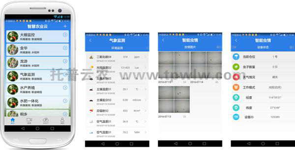 托普病虫害监测预警系统由虫情信息自动采集分析系统、孢子信息自动捕捉培养系统、远程小气候信息采集系统、病虫害远程监控设备、害虫性诱智能测报系统等设备组成,可自动完成虫情信息、病菌孢子、农林气象信息的图像及数据采集,并自动上传至云服务器,用户通过网页、手机即可联合作物管理知识、作物图库、灾害指标等???,对作物实时远程监测与诊断,提供智能化、自动化管理决策,是农业技术人员管理农业生产的“千里眼”和“听诊器”。