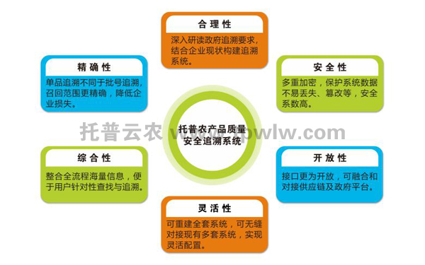 托普农产品质量安全追溯系统实现了“从农田到餐桌”的全程可追溯信息化管理。该系统是区域农产品质量安全信息统一发布和查询平台,根据农产品“一物一码”标准,消费者可以通过短信、电话、POS机、网上查询、智能手机扫描二维码、条形码等查询方式,准确了解农产品从生产、加工、物流、仓储、销售等全过程的信息。