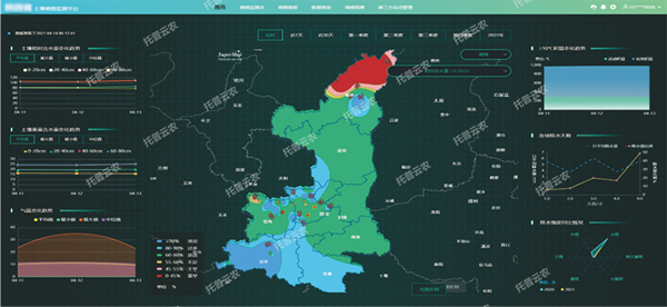 土壤墒情监测:包括实时数据采集、数据在线分析、任务管理、苗情监测和遥感分析。传感器采集实时数据,以列表和图表形式展现,包括土壤含水量和土壤温度、气象数据、种植数据和专题图。所有传感器采集的数据按时间以列表形式展现,一目了然,支持导出Excel格式。