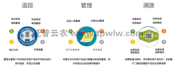 ?????? 系统采用新一代物联网及二维码技术,通过“一套管理系统,一张分销凭证,一个二维码,一条追溯链条”,实现动物及动物产品分销全程追溯,保障动物及产品质量安全全程监管和溯源。