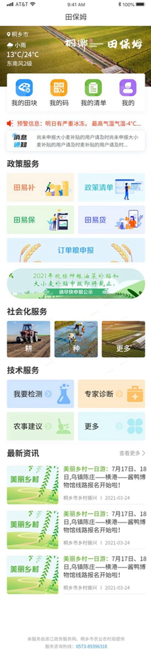 桐乡是浙北重要粮食生产基地,粮食总产稳定在13万吨以上,种植面积稳定在30万亩以上,种粮农户1.6万多户。生产过程中发现缺少快速服务入口、惠农政策申办繁琐、流程审批复杂以及找技术困难等问题。“田保姆”定位在农民最关心的“一件事”上,包含土地、气象、农技、农资、农机、金融、保险、补贴等都是解决农民最着急的问题。通过“田保姆”的建设与管理,就是要实现精细化、动态化、标准化管理,通过建章立制、细化标准、优化流程,实现农户通过使用“田保姆”全程在线上政策补贴申请、流转、审核,能够充分有效利用现有资源,提高服务效率和水平。