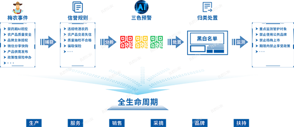 ③首个人工智能应用于品质管理,以禁药期为切入智能管控肥药使用应用AI农事行为识别、AI农技专家,禁药期农事AI行为监测、肥药两制绿色防控、进一步实现农场生产管理与政府监管方面的无人化、智能化,确保农业数据的百分百真实采集,高可靠保障农产品质量安全。在杨梅主产区42个入口配置图像识别摄像头,对禁药期上山打药的行为进行自动监控,实现发现药桶进山,村干部思想教育,全面提升梅农品质意识,提高品质品牌。