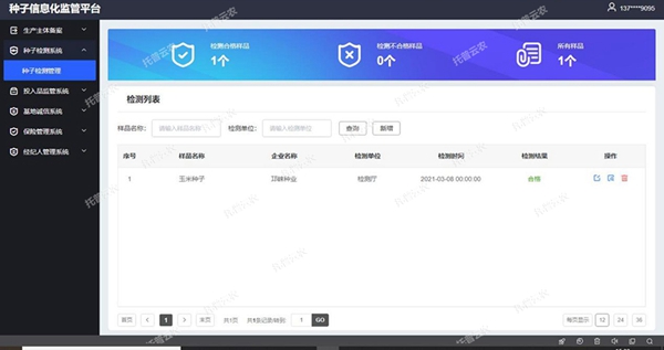 4、种业服务管理:种业服务平台立足于服务管理,提供多种专题分析??椋τ诮饩鲋忠捣⒄构讨幸蚱分钟爰际醺虏黄ヅ?,种子质量参差不齐、种业知识获取有限等问题,平台的建立可进一步科学提高农业推广中种子管理服务工作的水平与效率。